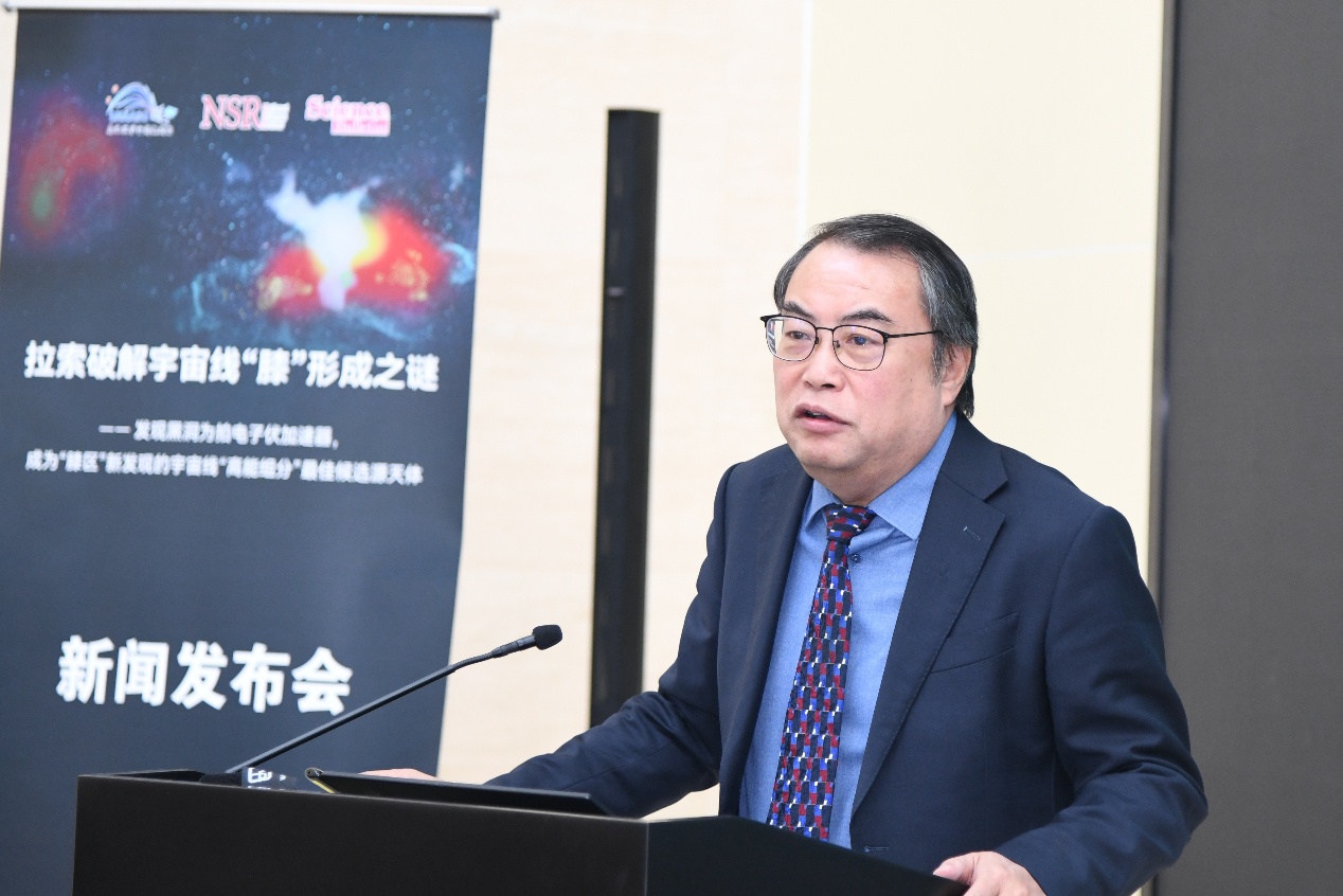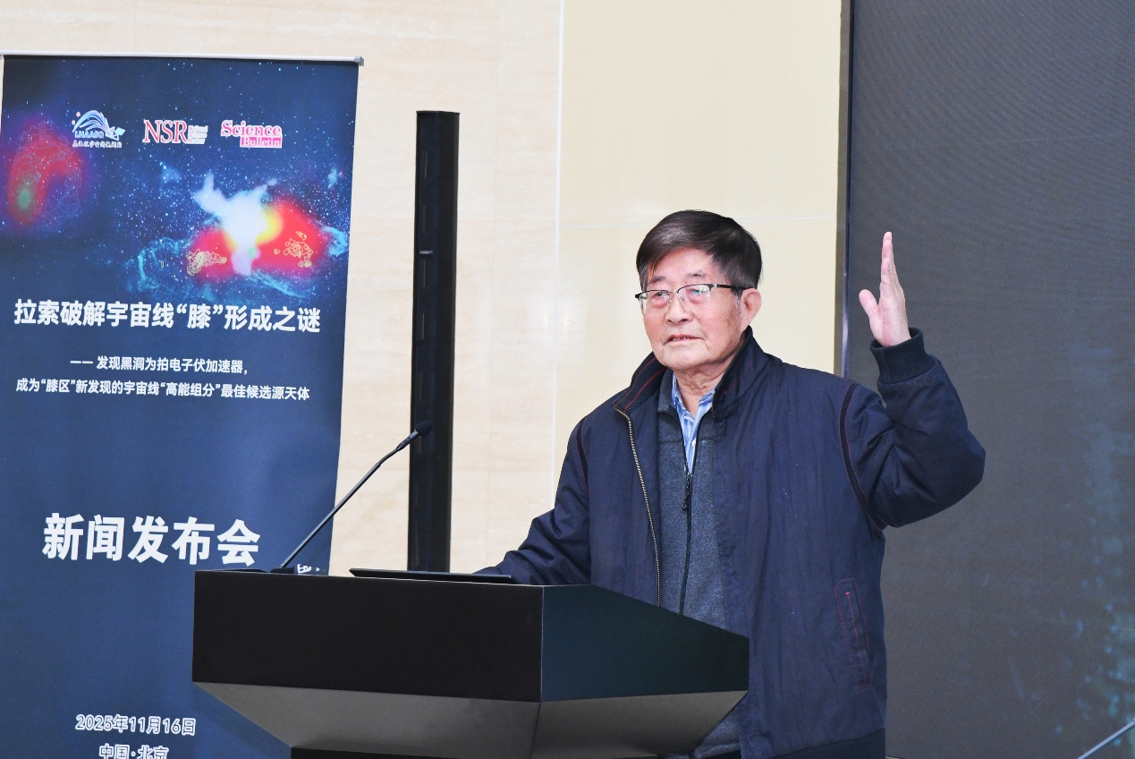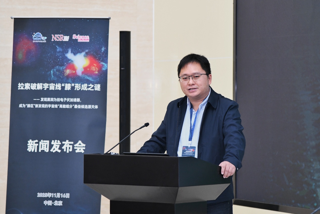 11月16日,“拉索破解宇宙線‘膝’形成之謎”成果新聞發(fā)布會在北京高能所召開,發(fā)布高海拔宇宙線觀測站(LHAASO,拉索)兩項具有里程碑意義的科學成果,分別發(fā)表于《National Science Review》與《Science Bulletin》,由中國科學院高能物理研究所、南京大學、中國科學技術大學、羅馬第一大學等機構完成。觀測發(fā)現(xiàn):1)黑洞吸積驅動的微類星體是銀河系中強大的粒子加速器,能夠將質子加速至拍電子伏(PeV)能段;2)宇宙線質子能譜“膝區(qū)”顯現(xiàn)超出預期的高能組分,黑洞正是其最可能的候選源天體。這一發(fā)現(xiàn)不僅揭示了宇宙線起源的關鍵機制,也為理解黑洞系統(tǒng)的極端物理過程開辟了一條新途徑。